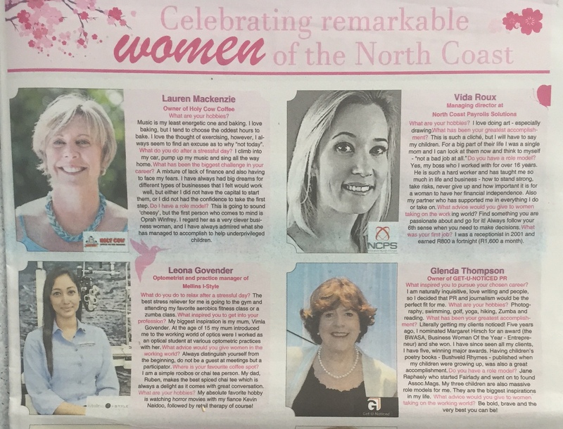 Uncategorized NORTH COAST WOMEN’S DAY FEATURE. Posted on Aug 15, 2017 by get_you_noticed 15 Aug Great to be featured in this piece on business women on the North Coast. Get-U-Noticed, Getting noticed! UNSTOPPABLE WOMEN! LEARNING FROM SURVIVAL – Grant Gavin’s talk at Do-ference.