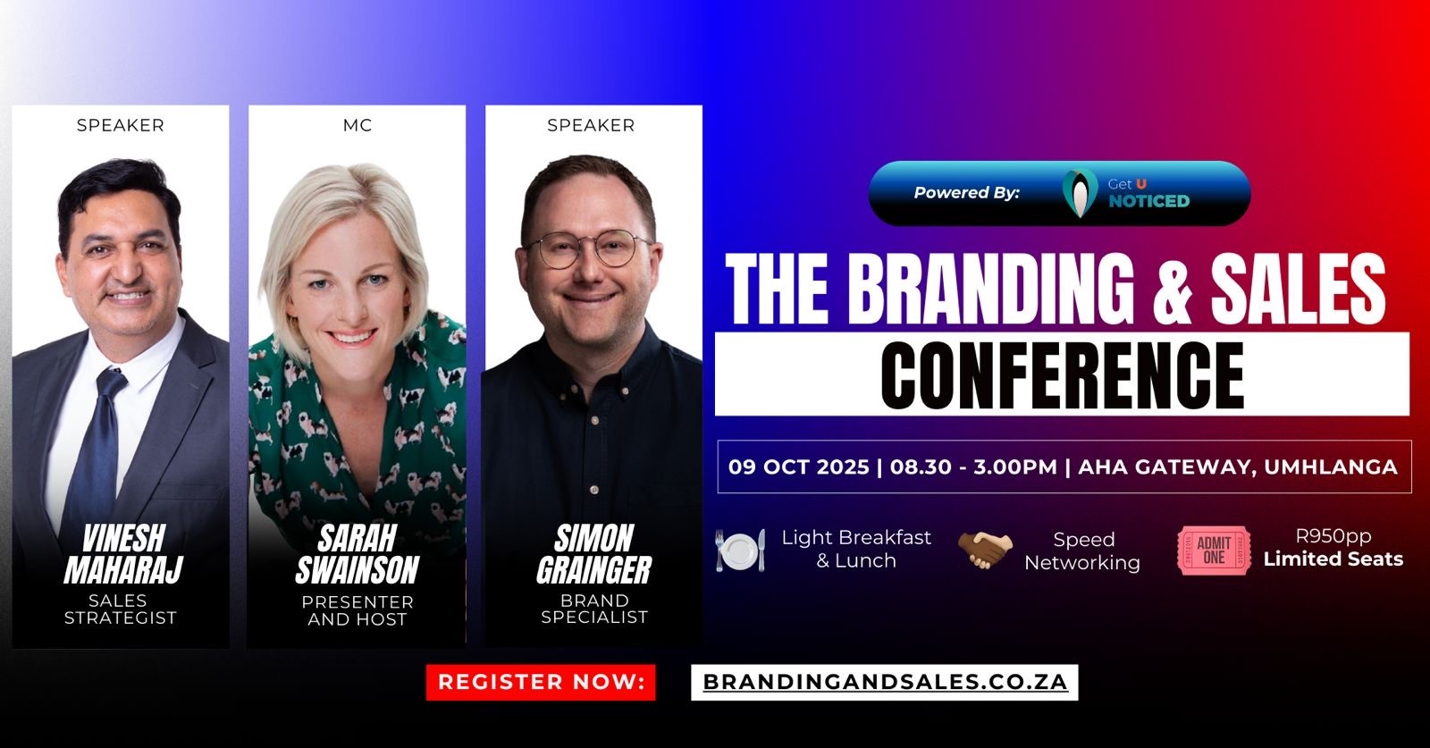 Sales and Branding are the driving forces behind building a successful business and with this in mind, the GET U NOTICED team have been instrumental in putting together a ground breaking conference on these hot topics. Aptly titled the Branding & Sales Accelerator: Where Strategy Meets Impact, the event will be held on: